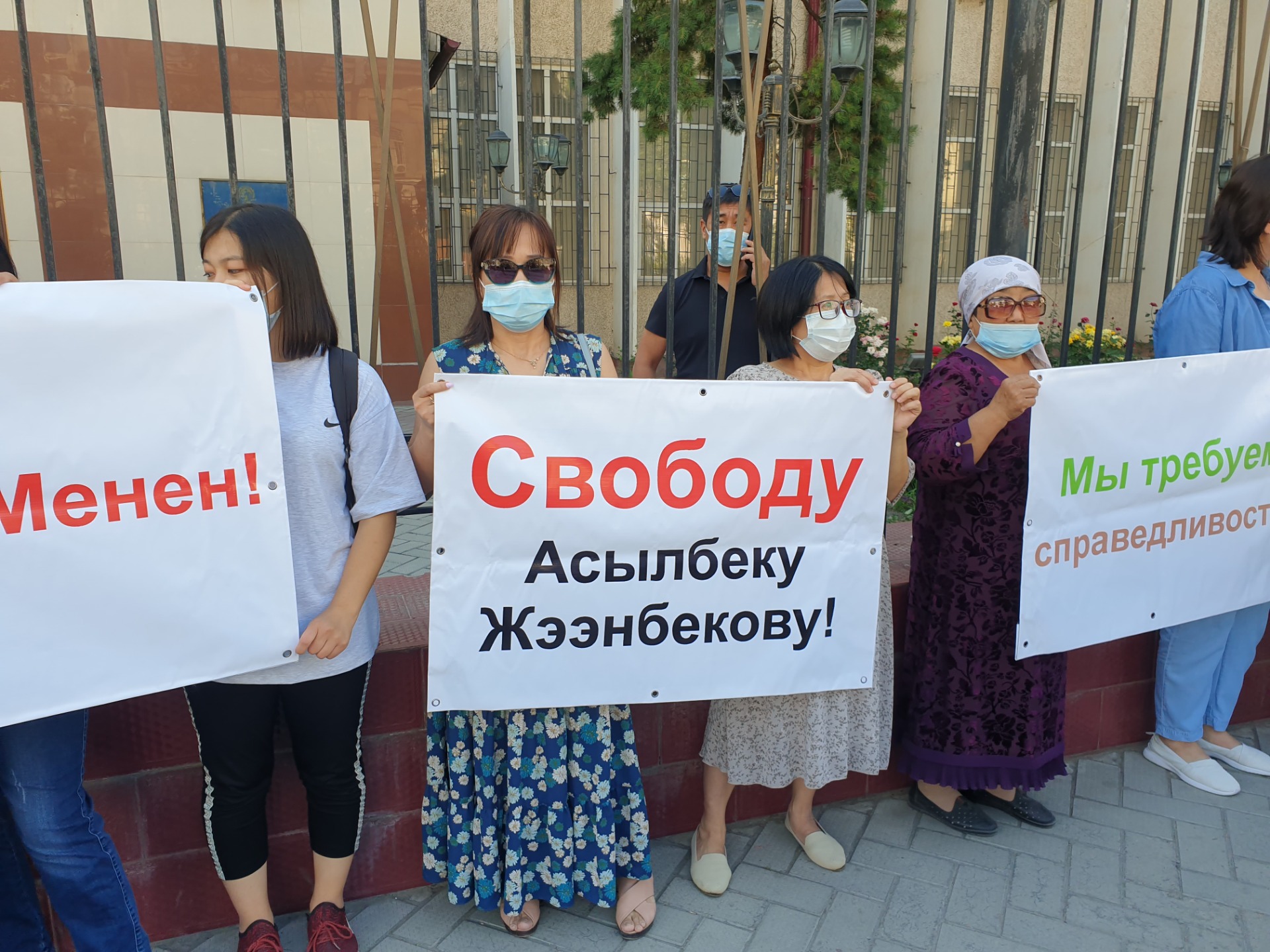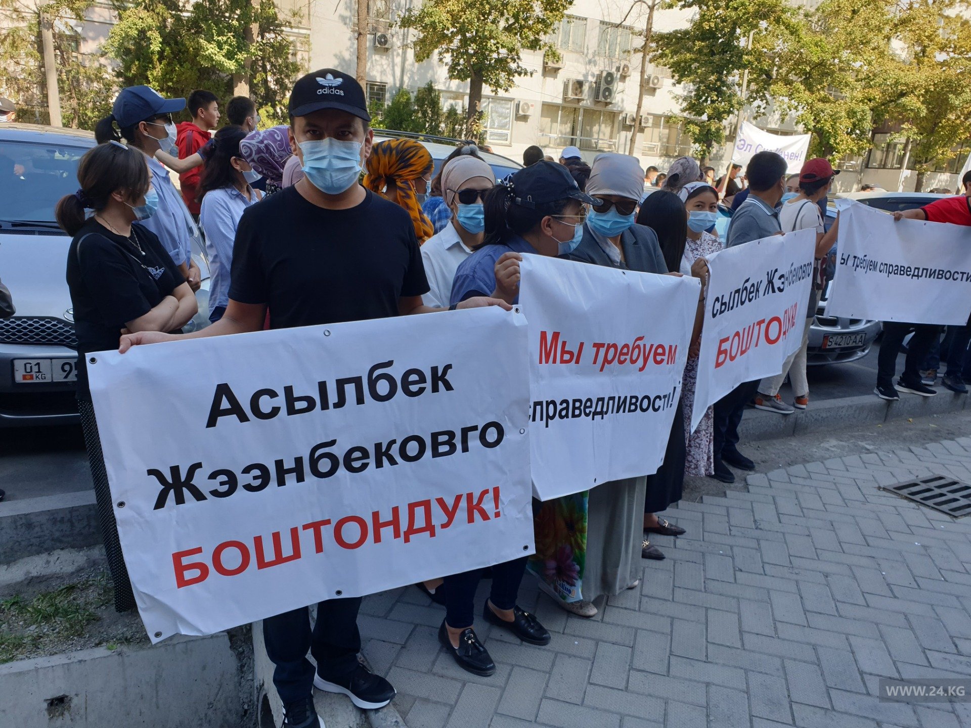 В Бишкеке около здания городского суда проходит митинг в поддержку депутата Асылбека Жээнбекова.