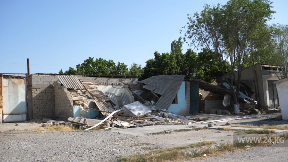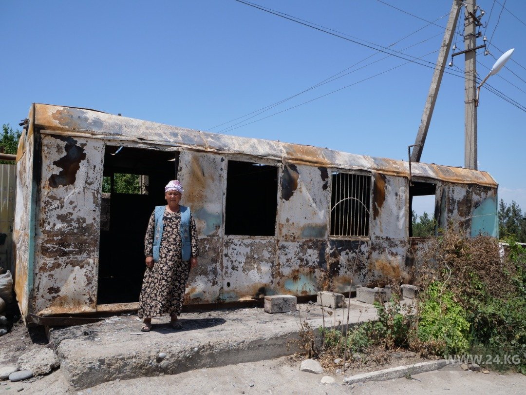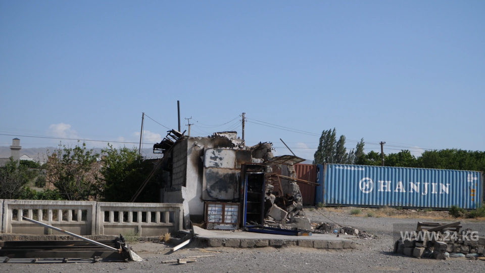 У жительницы села Арка Гулайым Турдалиевой был продуктовый магазин в приграничной зоне. Он полностью разрушен. И до сих пор его не восстанавливают.