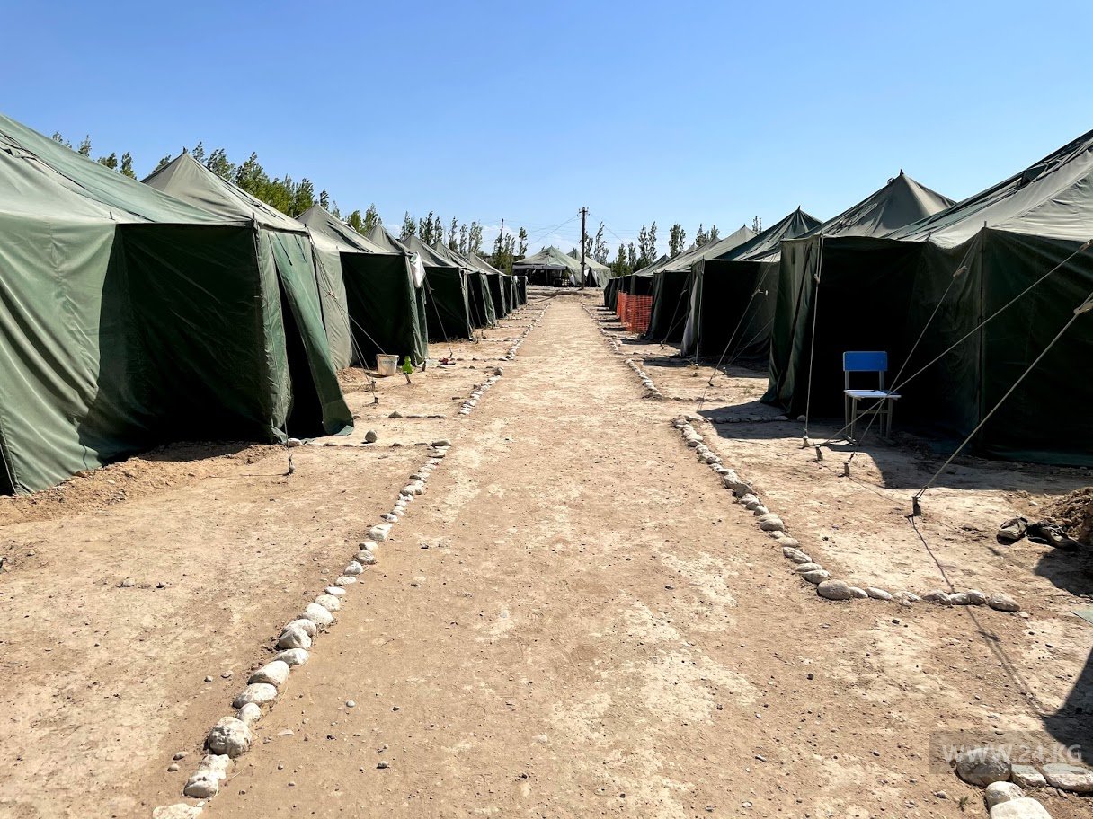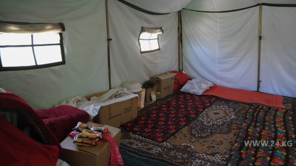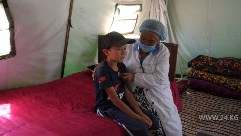 На 30 палаток один медпункт. «Люди обращаются с температурой, кашлем, но в основном из-за аллергии. Здесь пыльно и грязно», — сетует фельдшер Айымгул Алымкулова.