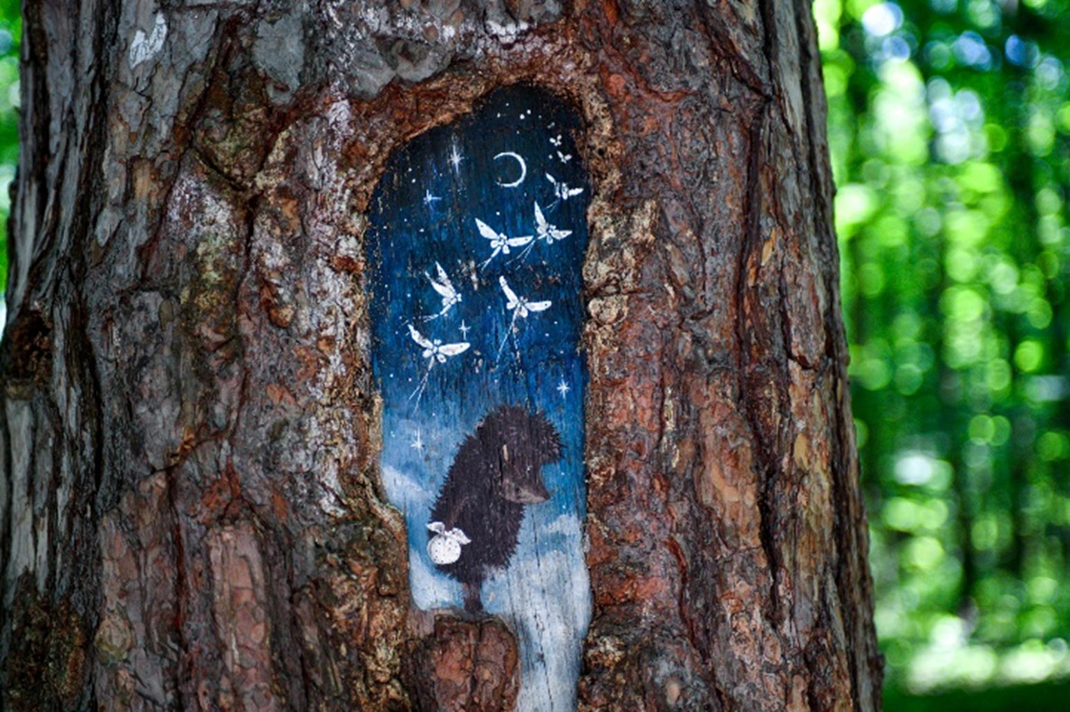 «Поврежденные участки тщательно очищают от остатков коры, гнили, лишайников и мха. Обязательно дезинфицируют, а дупла пломбируют специальной смесью. Следующий этап — нанесение одного-двух слоев водоотталкивающей грунтовки. Для рисования используются безопасные и стойкие акриловые краски. В результате рисунок становится лечебным пластырем, под которым раны дерева консервируются, постепенно затягиваются, а иногда и полностью заживают», — написал он.