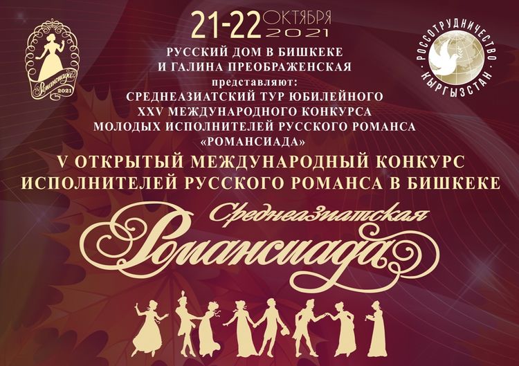 В Бишкеке 21-22 октября состоится V Открытый международный конкурс исполнителей русского романса «Среднеазиатская Романсиада». Об этом сообщили организаторы.