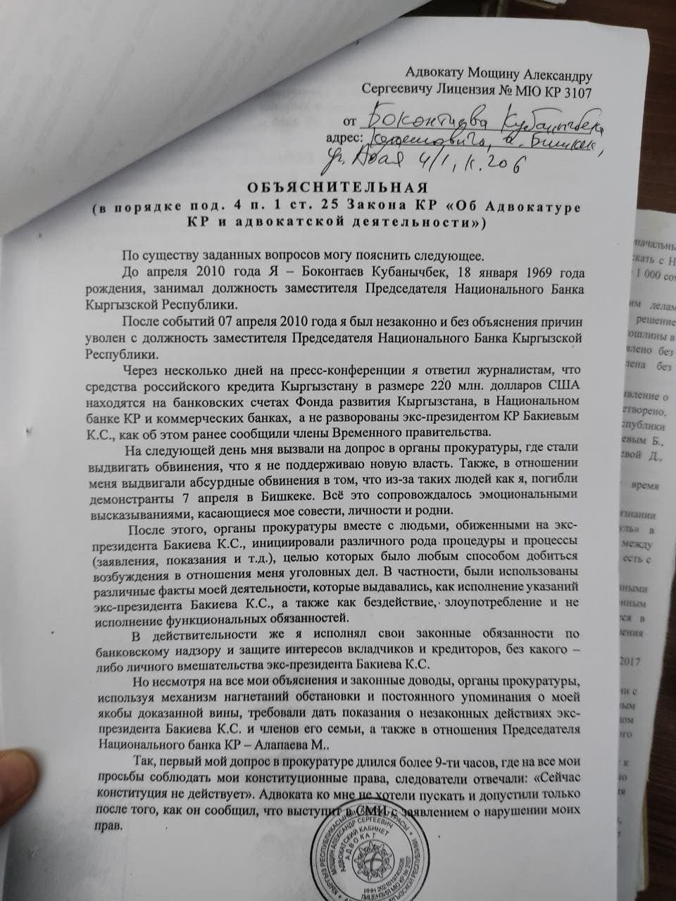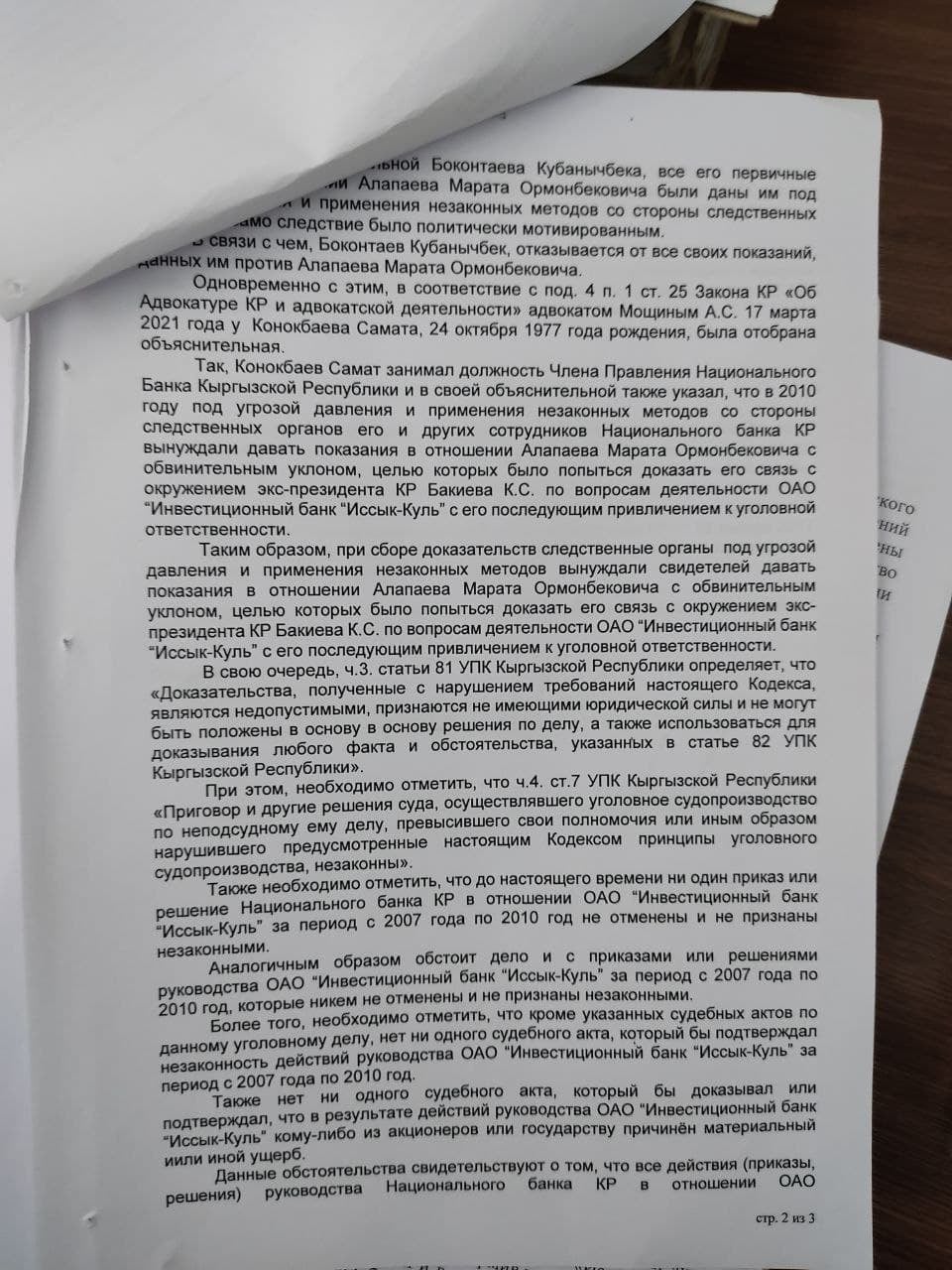 Отмечается, что решение о новом рассмотрении приняли 18 августа 2021 года по ходатайству адвоката осужденного Александра Мощина, который просил пересмотреть и отменить судебный приговор по уголовным делам расхищения Бакиевыми $220 миллионов российского кредита и соучастия в незаконном захвате «Инвестиционного банка «Иссык-Куль».