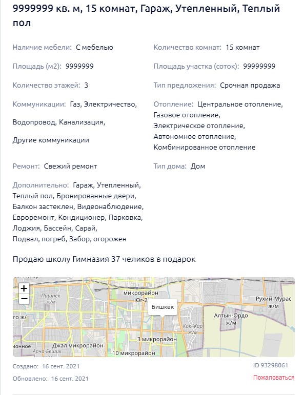 Шестиклассник в Бишкеке решил продать свою школу. Объявление он разместил на сервисе для купли-продажи.
