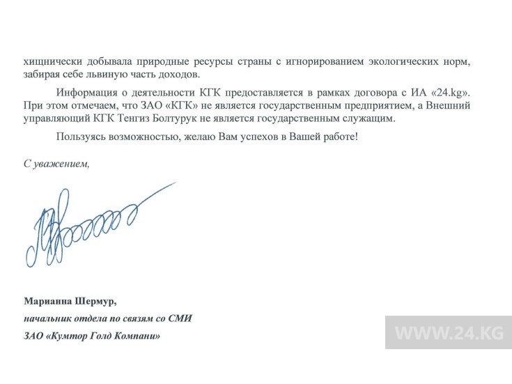 Редакция 24.kg вновь обращается, на этот раз публично, к «Кумтор Голд Компани», ОАО «Кыргызалтын», ФУГИ, кабинету министров и Акылбеку Жапарову с просьбой ответить на следующие вопросы: