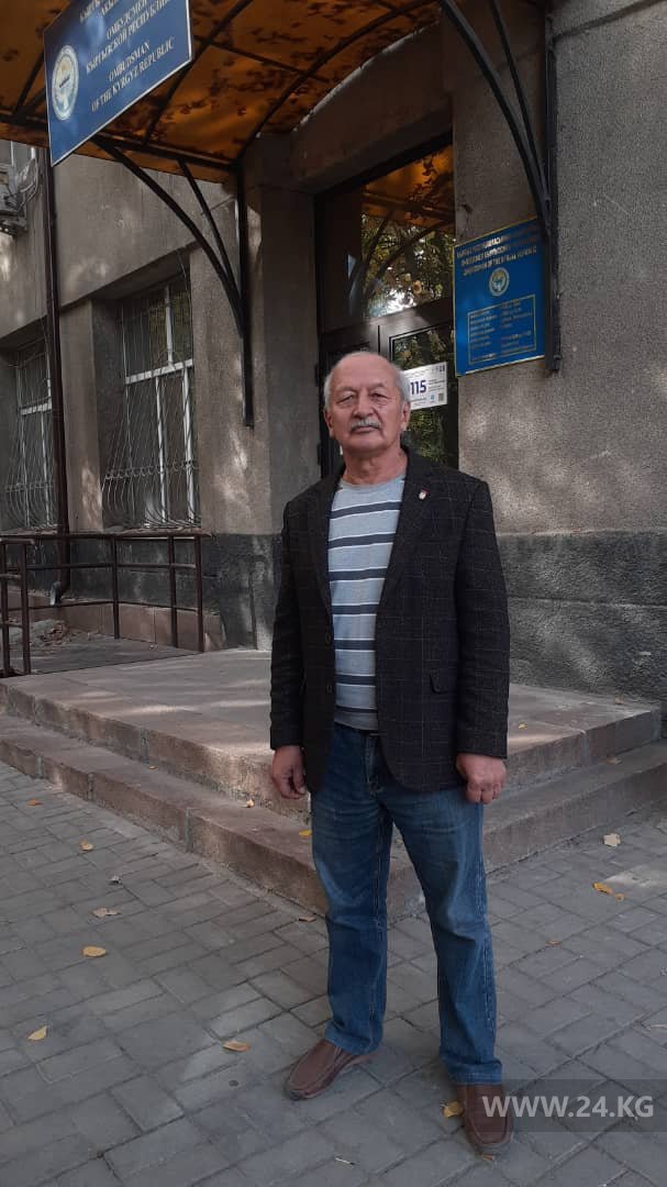 В Бишкеке военный правозащитник Анвар Сартаев повторно вышел на акцию протеста в поддержку сотрудников военкоматов. Одиночный пикет он устроил у здания института омбудсмена.
