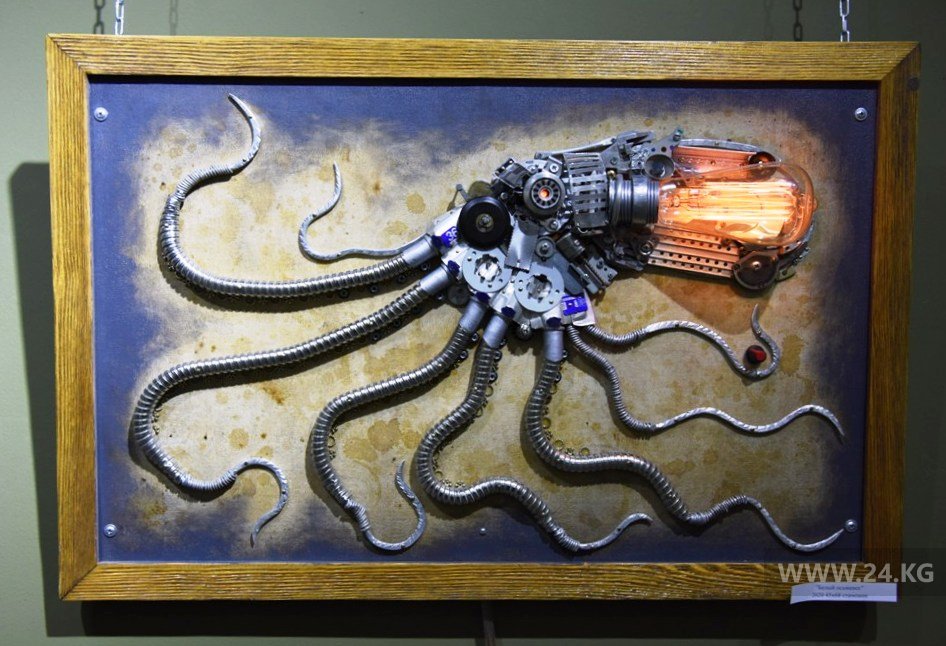 Художников, которые работают в стимпанке и киберпанке, у нас действительно немного. Дмитрий Фильев, он уехал в Грузию, и мой коллега по театру актер Евгений Романов. Последний работает исключительно в металле. У меня больше дерева, холстов, картин. Пробуюсь и в железе, но это не так просто.