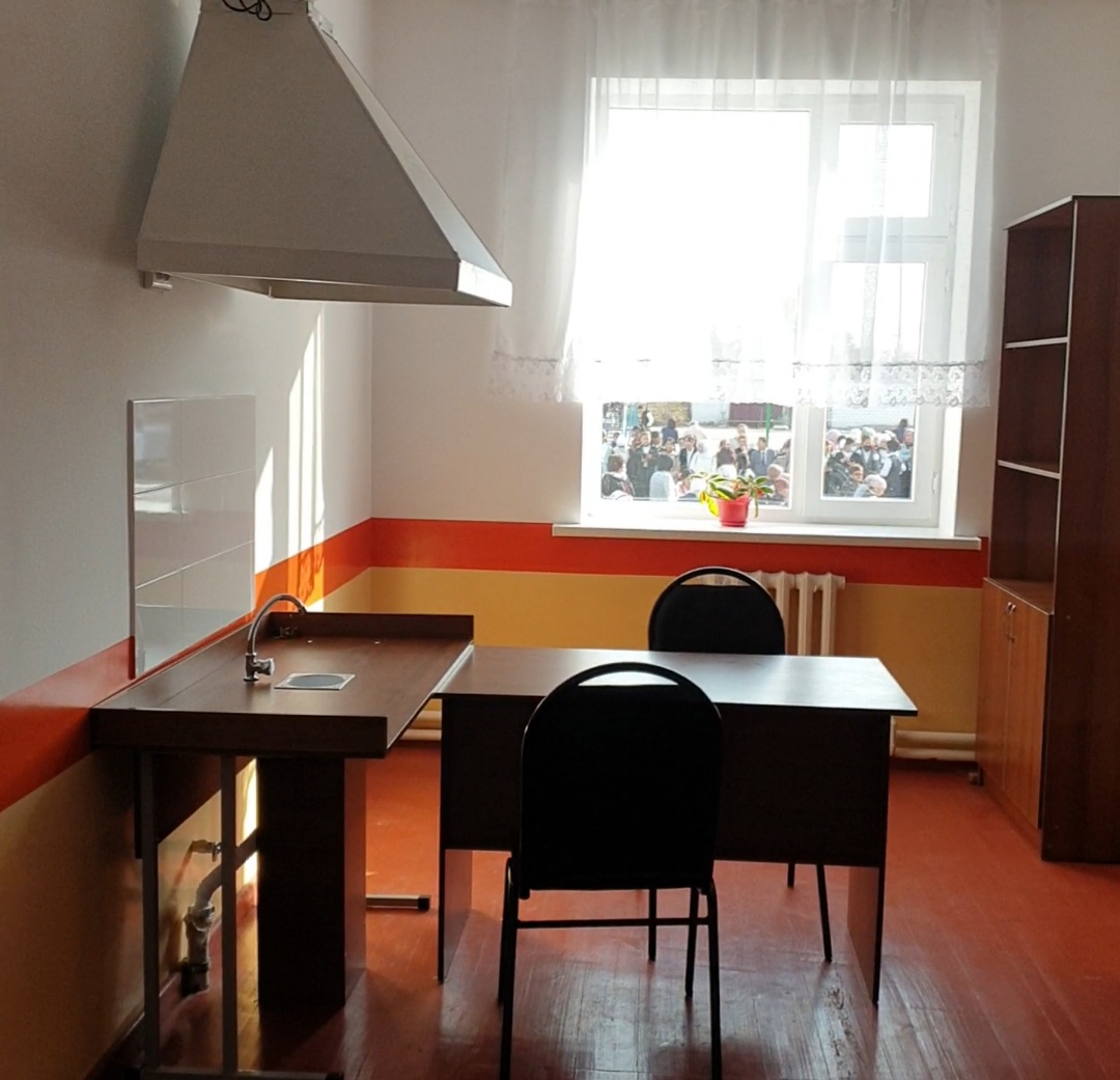 В двухэтажном учебном корпусе, помимо учебных и лабораторных классов, учительской, расположены столовая, актовый и спортивный залы с раздевалками и медкабинет. Школа оснащена всем необходимым оборудованием и мебелью.