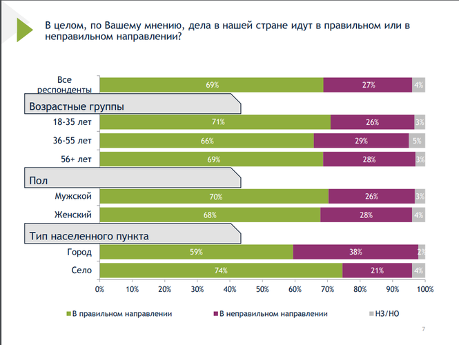 При этом 69 процентов жителей сел считают, что экономически живут хорошо, 12 процентов — очень хорошо. Среди респондентов, представителей городов, 74 процента считают, что живут хорошо, 8 процентов — очень хорошо.