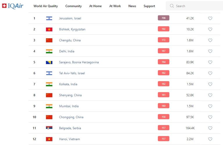 В 18.00 статус города отмечен как «нездоровый». Индекс качества воздуха, по данным сайта, составляет 192 (AQI).