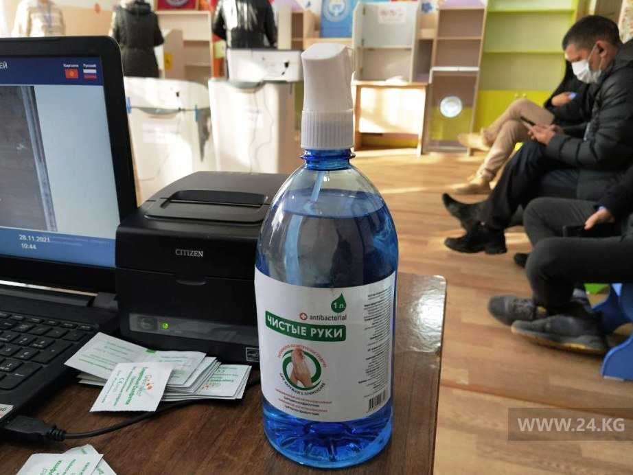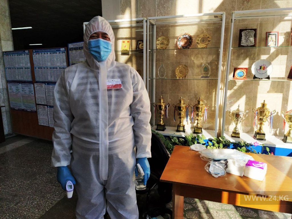 Один из самых освещаемых в прессе избирательных участков столицы УИК № 1046, расположенный в здании Бишкекского гуманитарного университета. С утра проголосовать сюда пришли порядка 200 избирателей. На входе показательно экипированный сотрудник санэпидстанции. Поначалу кажется, что это и не УИК вовсе, а красная зона.