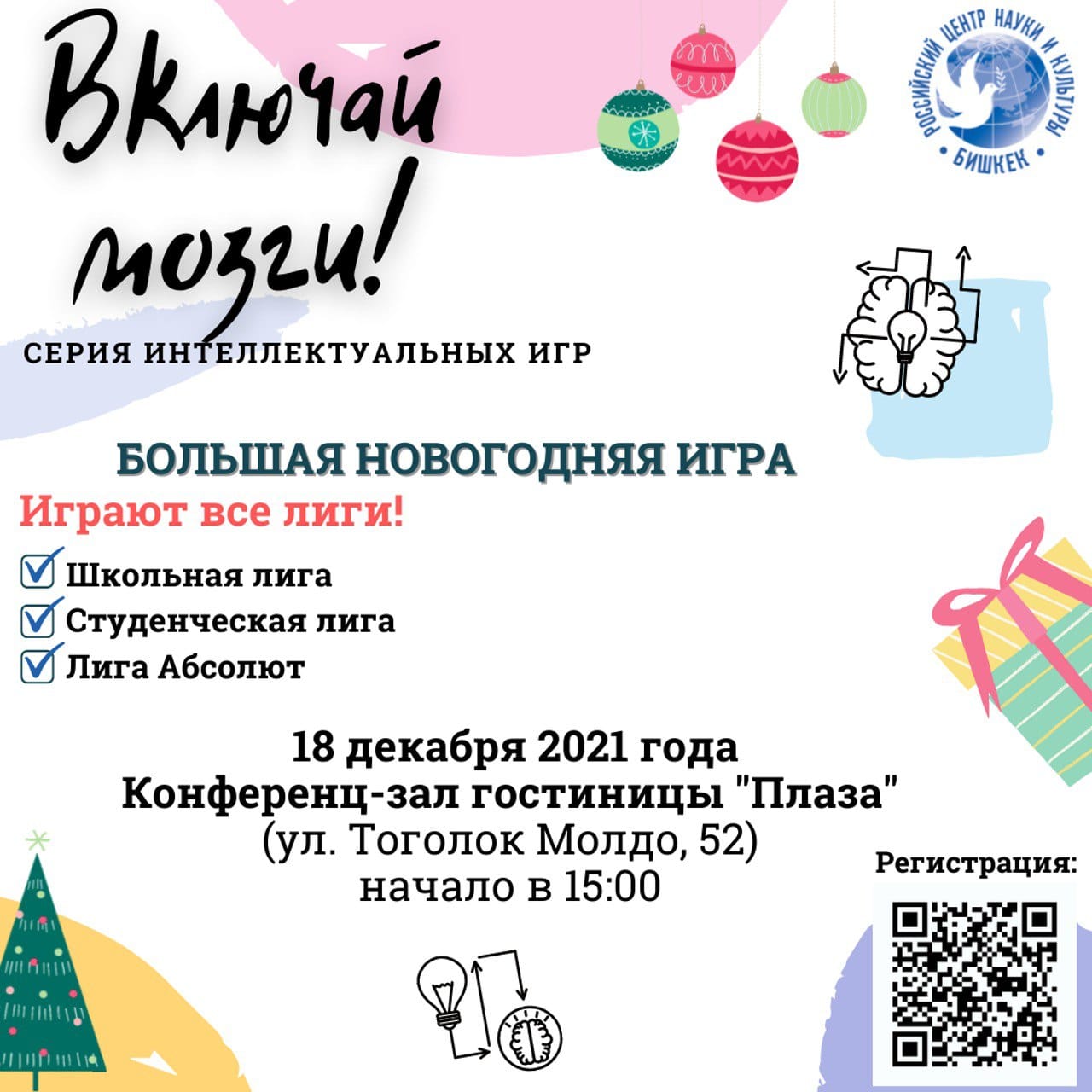 В Бишкеке 18 декабря пройдет большая новогодняя игра «Включай мозги!». Об этом сообщили в Русском доме в столице.
