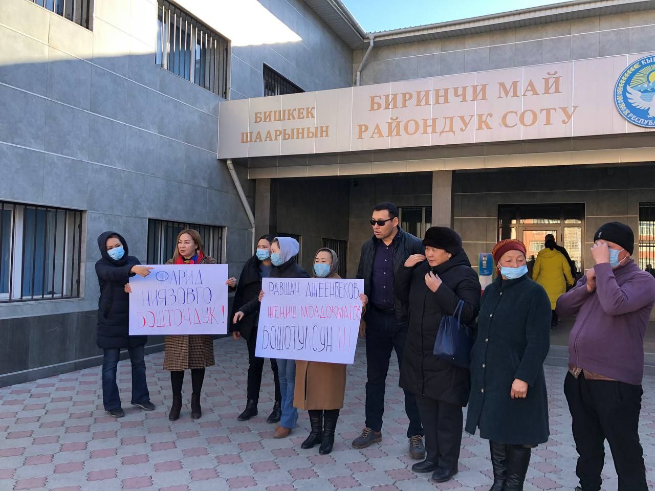 В Бишкеке возле здания Первомайского районного суда митингуют сторонники задержанных Равшана Джеенбекова, Фарида Ниязова и Жениша Молдокматова. Об этом 24-kg.com сообщила Кундуз Джолдубаева.