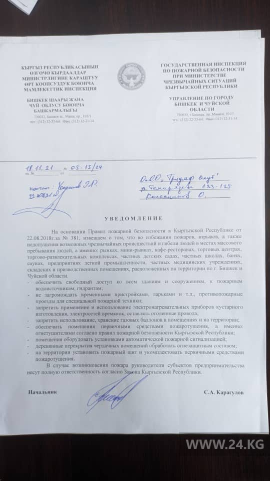 «Причины отказов разные. Нам рекомендовали проводит лишь профилактические мероприятия, ссылаясь на возбужденное уголовное дело после пожара на объекте в 2020 году. В другом письме указывали на недостаточность оснований для проверки. Просьбы провести плановые проверки также отклонили», — говорит Салмоорбек Карагулов.