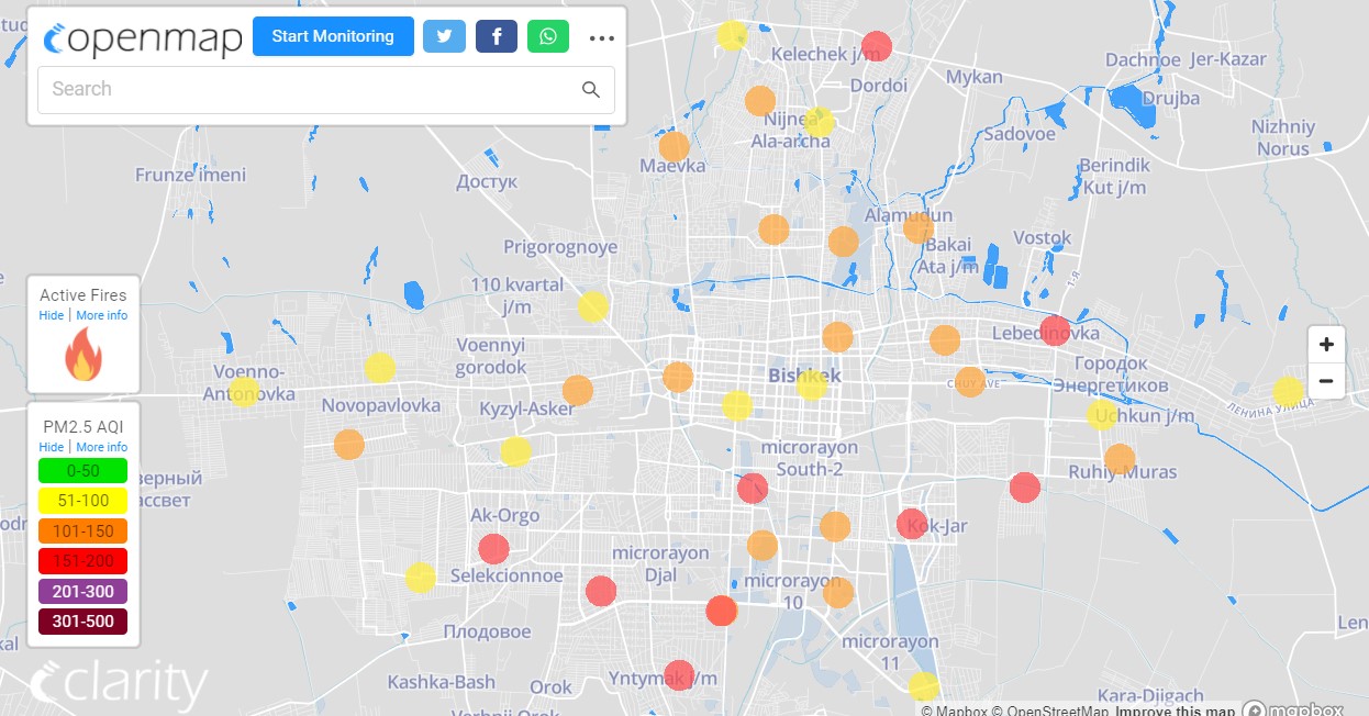 В рейтинге крупнейших городов мира по качеству воздуха World Air Quality Бишкек опустился на 15-е место.