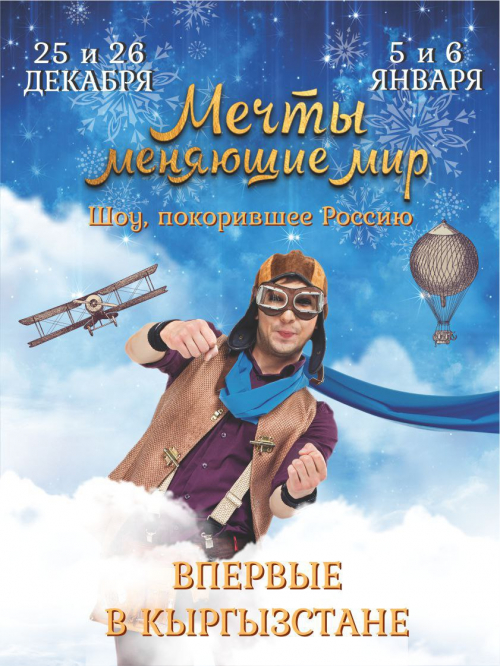 5 января в Кыргызской национальной консерватории пройдет шоу для будущих гениев и их родителей «Мечты, меняющие мир». Зрители познакомятся с интересными историями жизни известных ученых и изобретателей, таких как Дэвид Копперфильд, Никола Тесла, Фан Янг, Архимед, Томас Эдисон, Альберт Эйнштейн. Каждая история будет сопровождаться своим шоу!