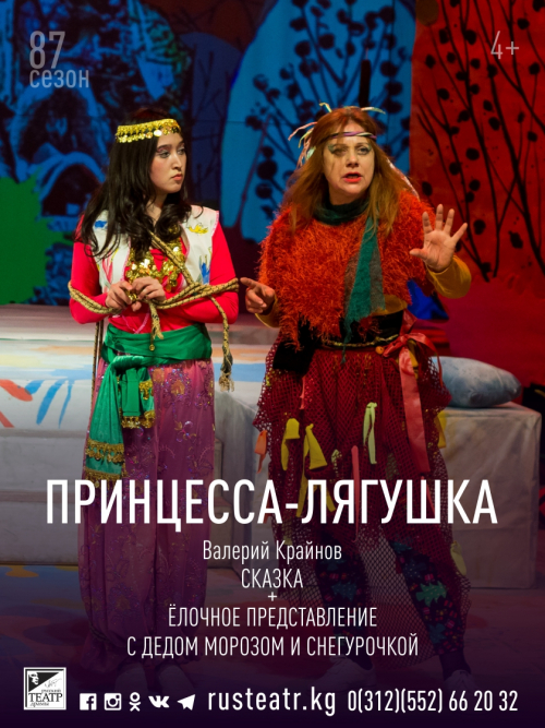 Русский театр драмы имени Чингиза Айтматова организует новогоднее елочное представление с Дедом Морозом и Снегурочкой, а также покажет премьеру новой красочной сказки «Принцесса-Лягушка». Спектакли будут идти каждый день вплоть до 9 января следующего года.