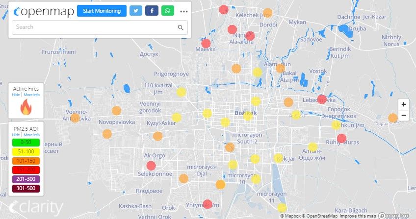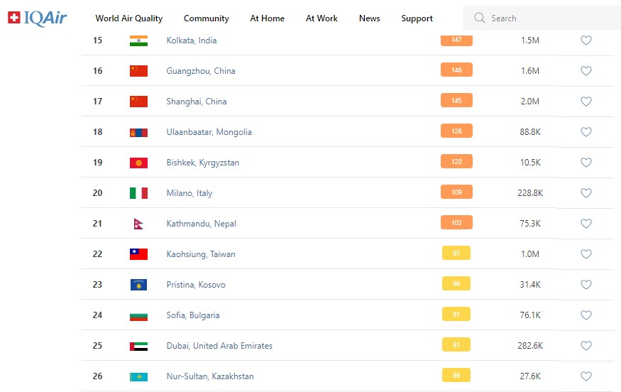 В рейтинге крупнейших городов мира по качеству воздуха World Air Quality Бишкек опустился на 19-е место.