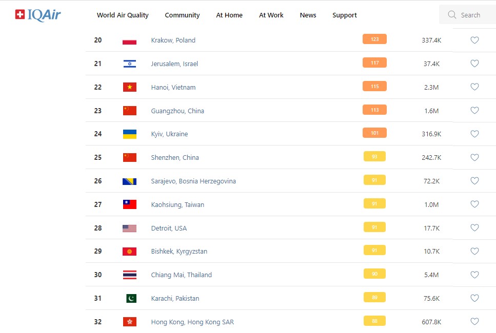 В рейтинге крупнейших городов мира по качеству воздуха World Air Quality Бишкек поднялся на 29-е место.