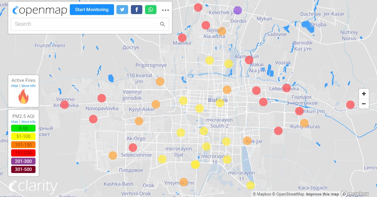 В рейтинге крупнейших городов мира по качеству воздуха World Air Quality Бишкек опустился на 48-е место.