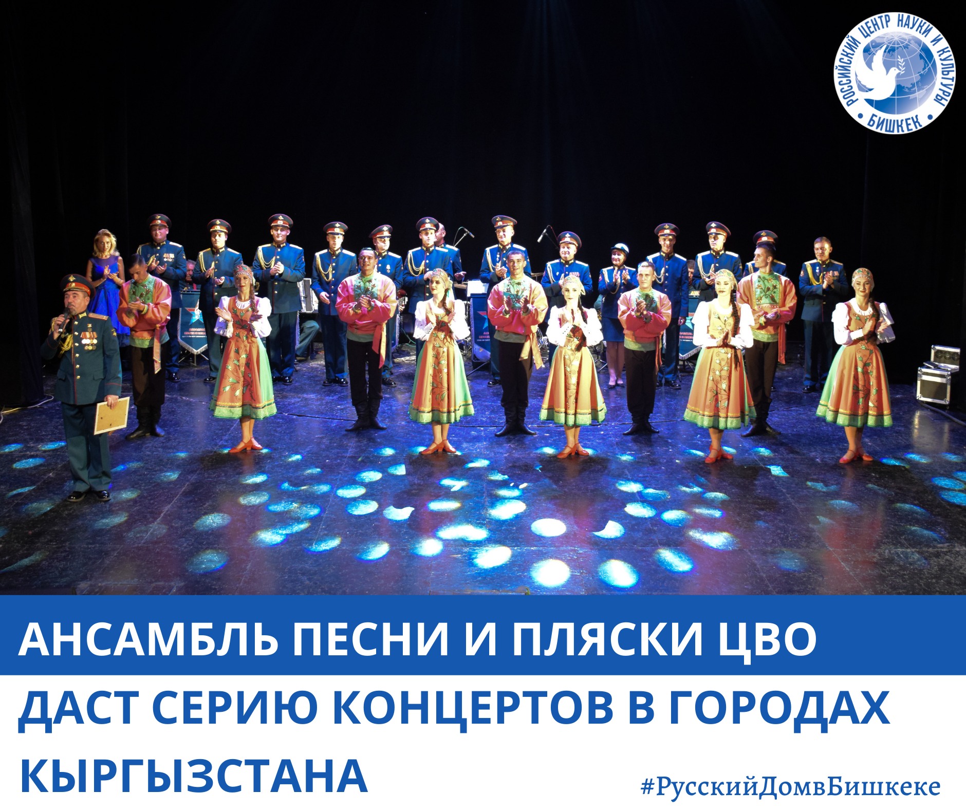 В трех городах Кыргызстана пройдут бесплатные концерты ансамбля песни и пляски Центрального военного округа Вооруженных сил России. Об этом сообщили в Русском доме в Бишкеке.