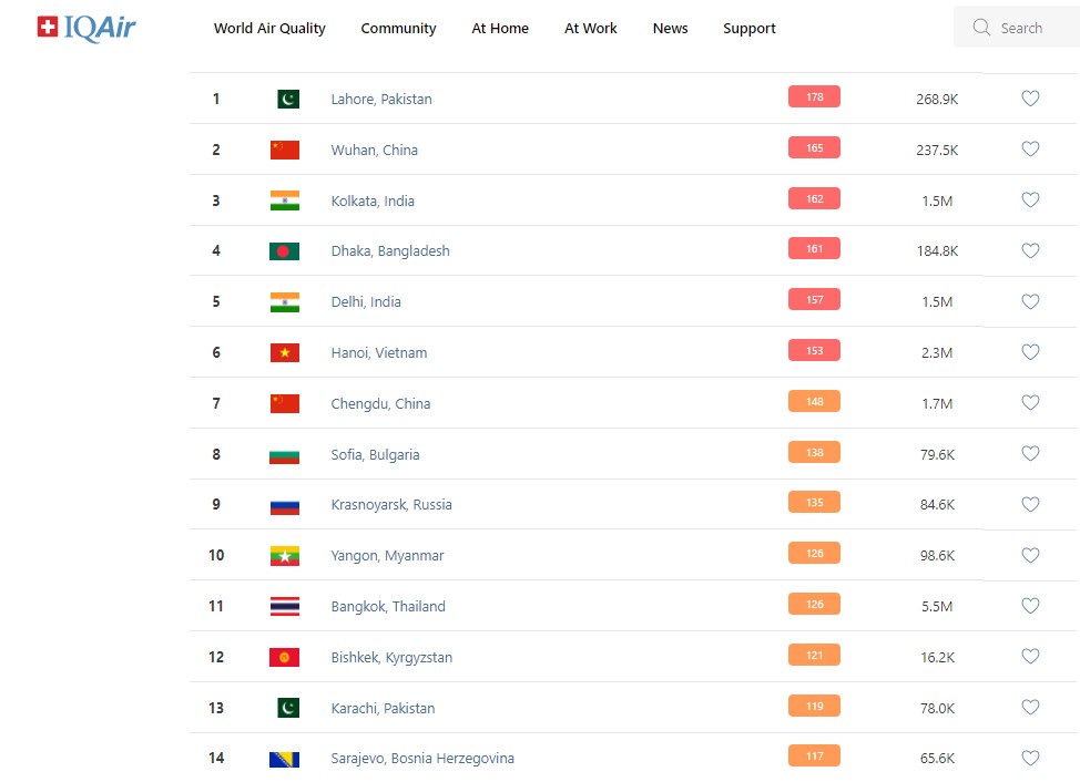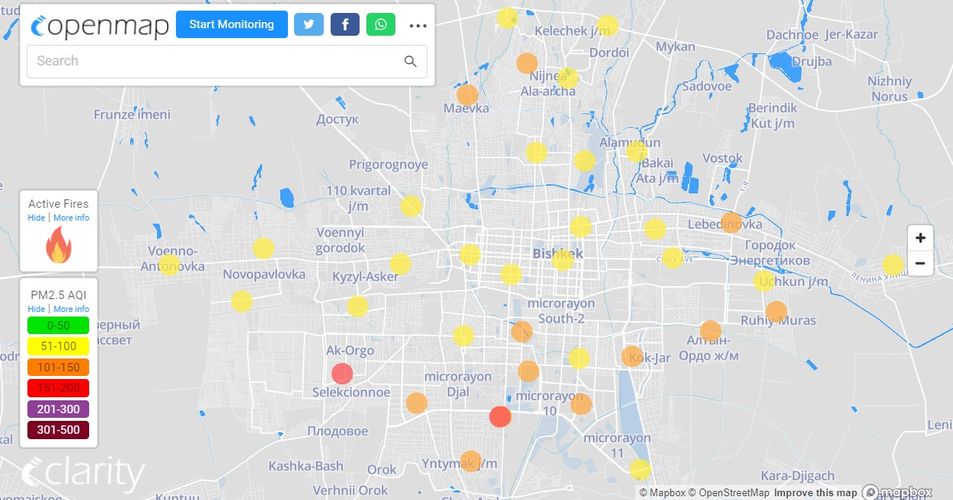 В рейтинге крупнейших городов мира по качеству воздуха World Air Quality Бишкек поднялся на 12-е место.