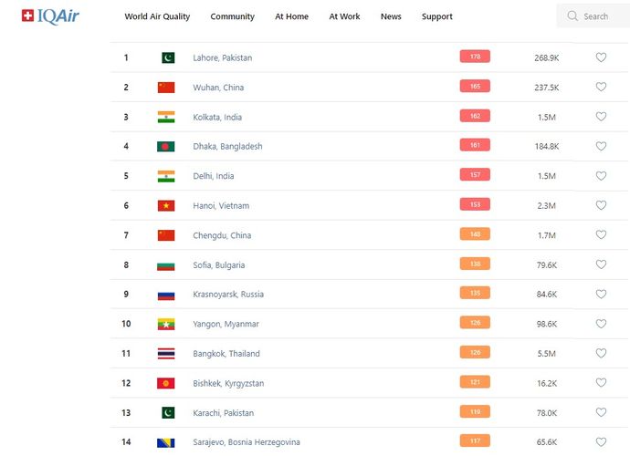 В 18.00 статус города отмечен как «нездоровый для чувствительных групп». Индекс качества воздуха, по данным сайта, составляет 121 (AQI).