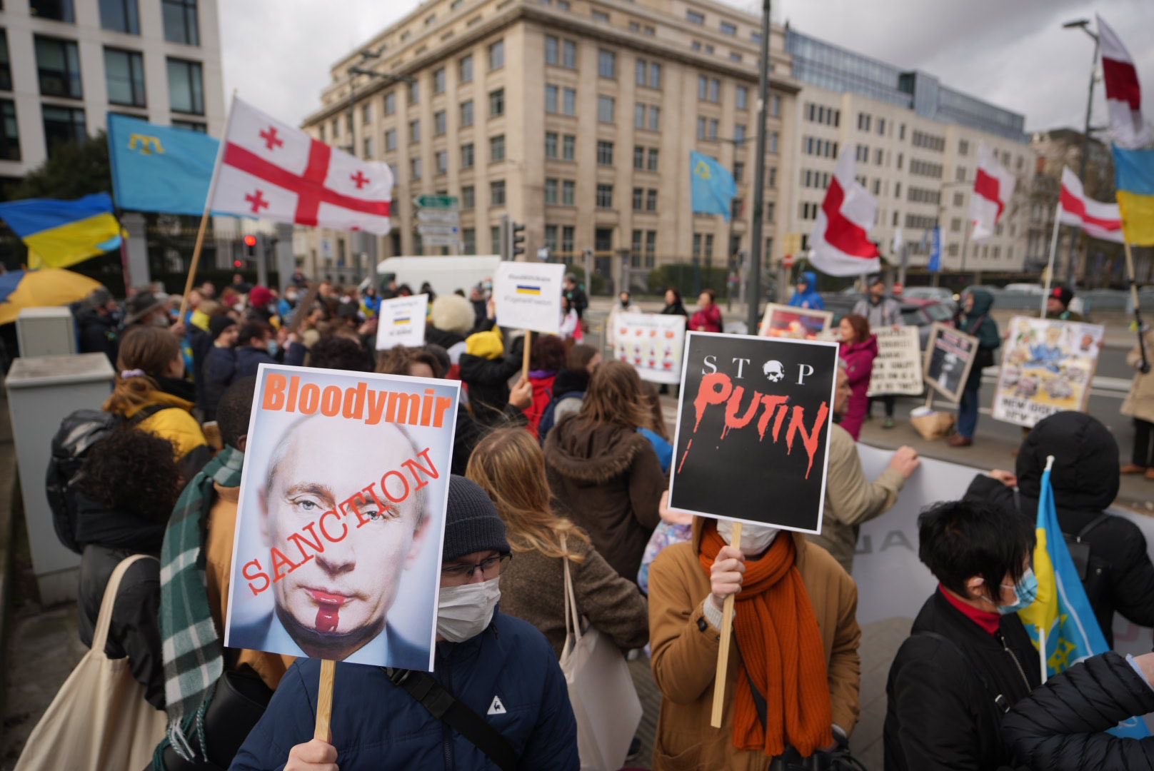 Некоммерческий центр СМИ и гражданского общества в Брюсселе для обмена опытом между Украиной и Евросоюзом также провел акцию протеста против военной операции России. На плакатах надписи: «Остановись, Путин», «Остановите его, пока не стало поздно».Акции в поддержку Украины прошли также в столице Японии Токио.