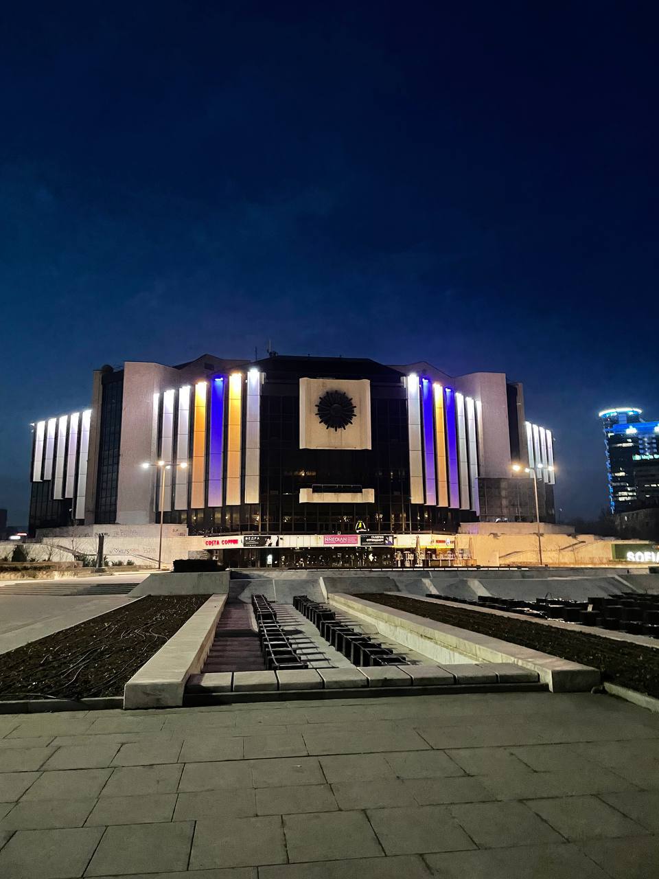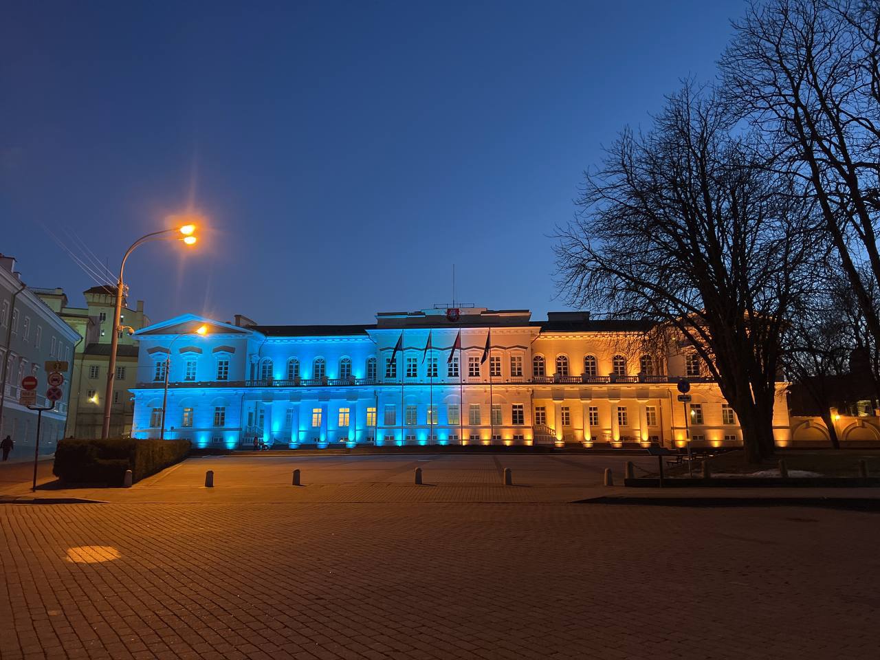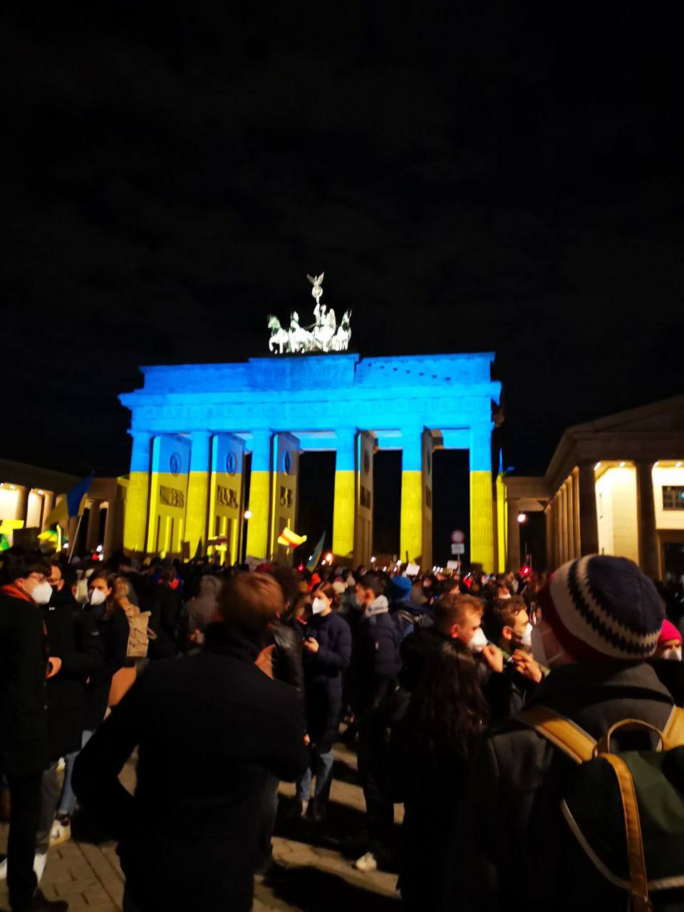 Во многих странах мира главные достопримечательности подсветили сине-желтыми цветами в знак поддержки Украины. Фотографии опубликованы в Telegram.