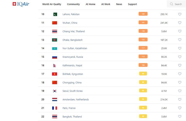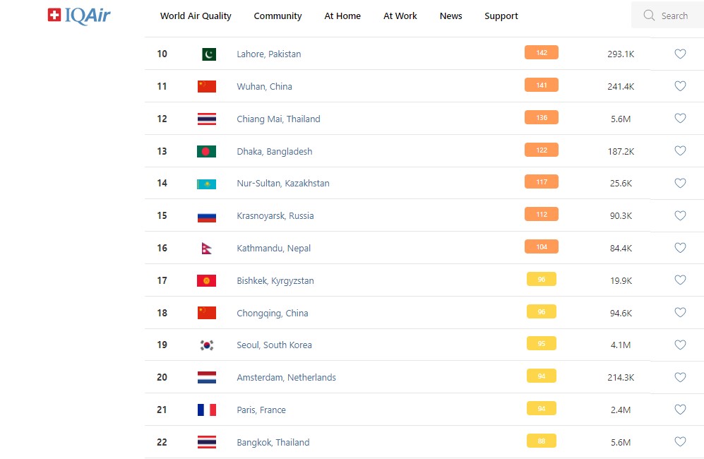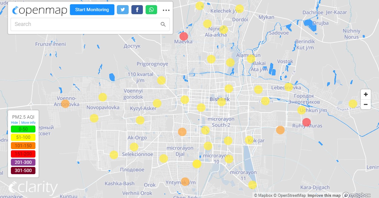 В рейтинге крупнейших городов мира по качеству воздуха World Air Quality Бишкек поднялся на 17-е место.