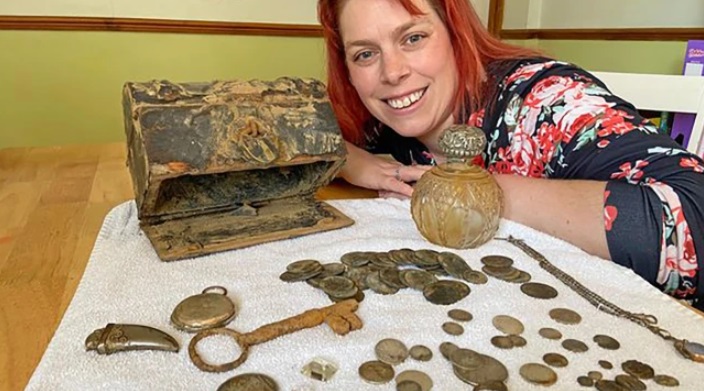 Жительница Великобритании нашла на пляже старый сундук с монетами и драгоценными камнями. Об этом сообщают зарубежные СМИ.