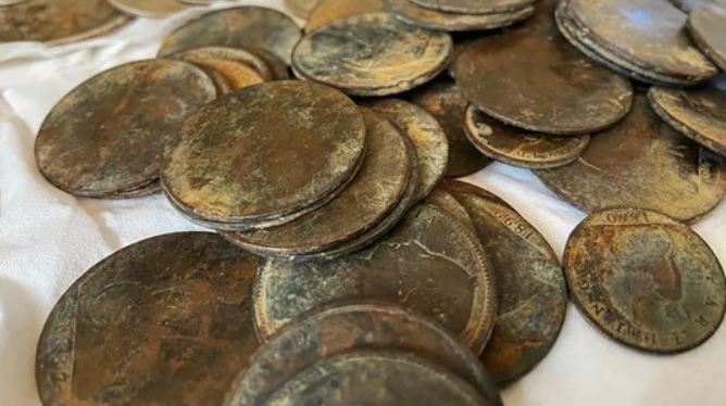 Женщина и ее дети соскребли с сундука песок при помощи зубных щеток. Затем им удалось добраться до его содержимого через поврежденное дно. Внутри оказалось около сотни монет, преимущественно викторианских и времен короля Георга III, правившего Британией в конце XVIII века. Некоторые монеты, по словам женщины, выглядели средневековыми и древнеримскими.