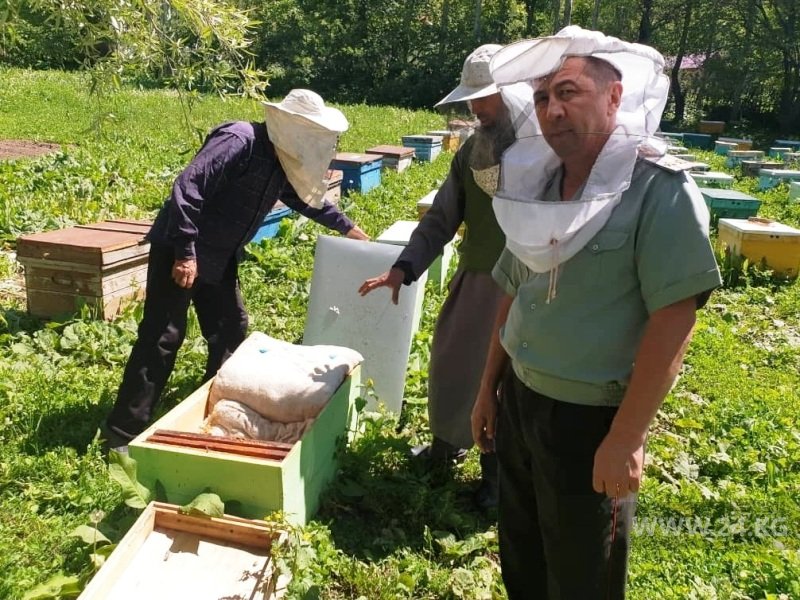С 2018-го в колониях-поселениях № 42 в Оше и № 52 в Токтогуле освоили непростое даже для опытных фермеров дело — пчеловодство. 150 ульев в среднем за год приносят 2 тонны меда.