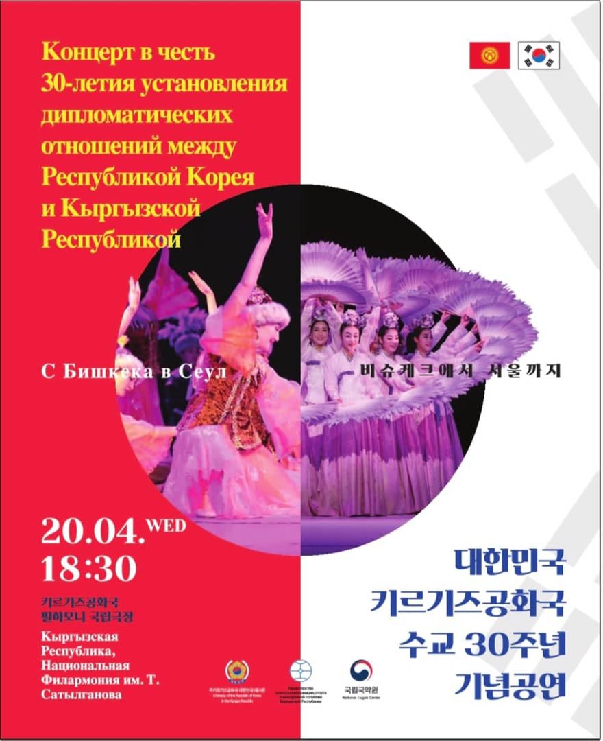 В Бишкеке пройдет концерт в честь 30-летия установления дипотношений между Кыргызстаном и Кореей. Об этом сообщили в Минкультуры.
