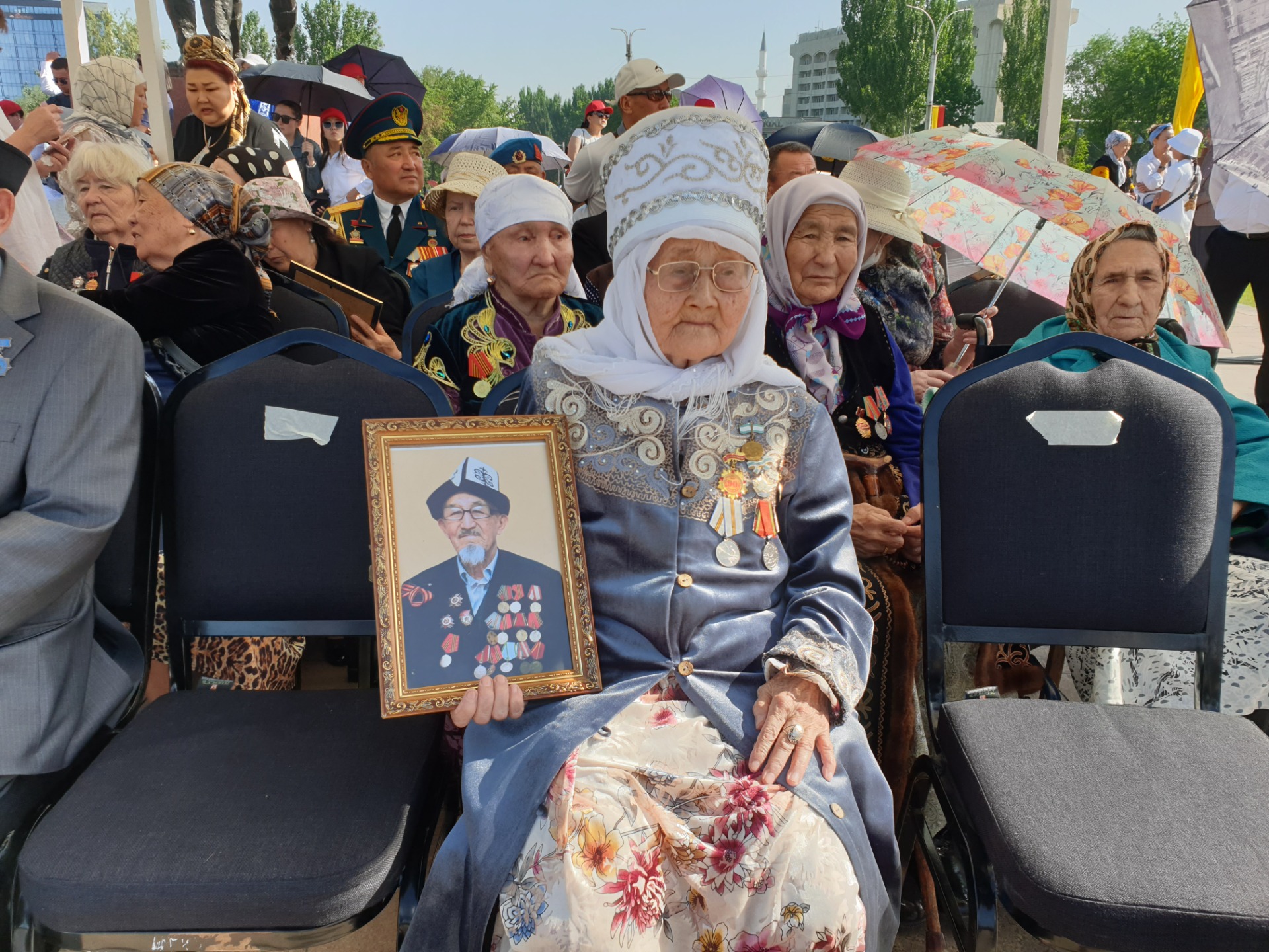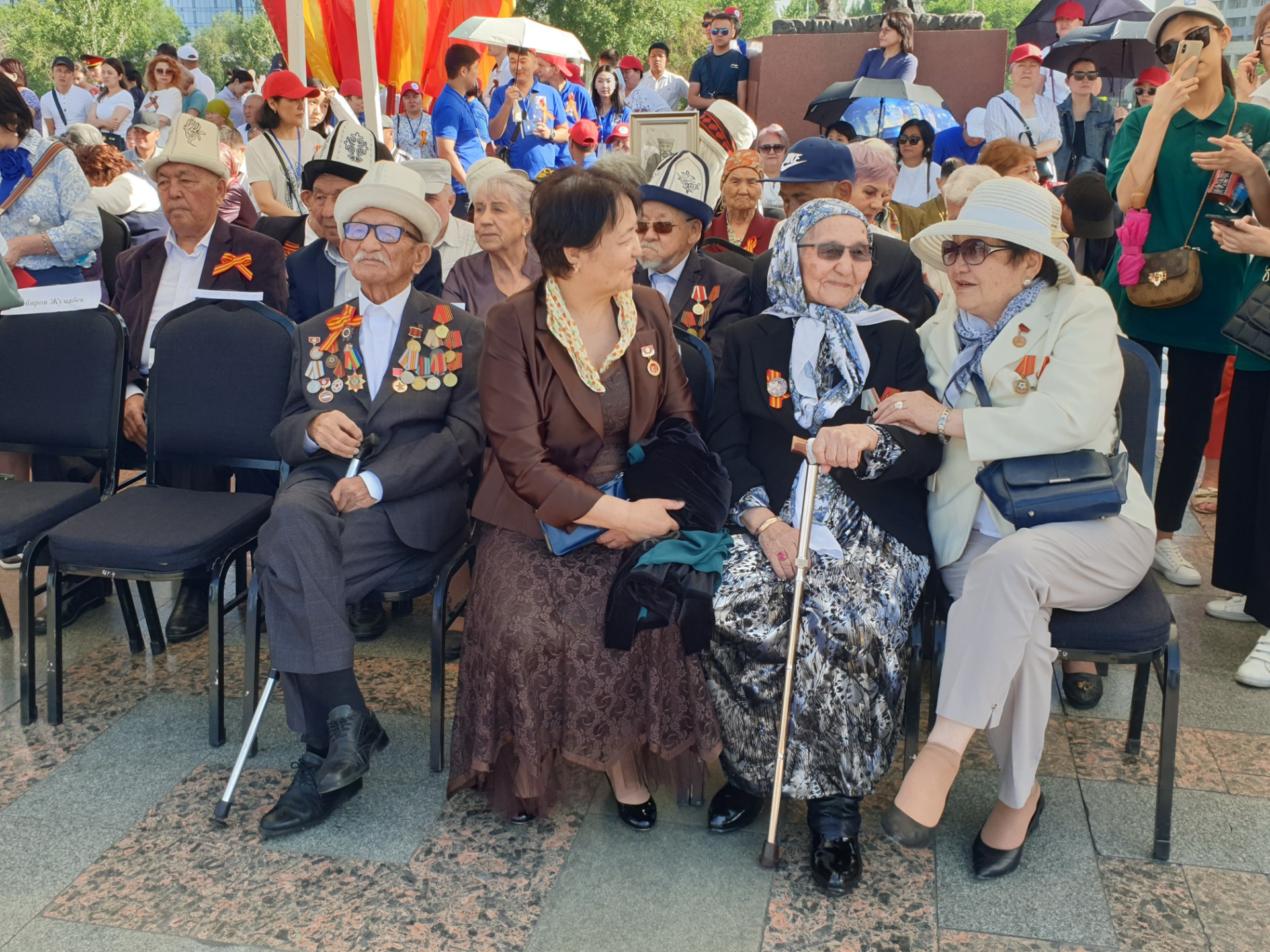 На площади Победы собрались ветераны ВОВ, вдовы, труженики тыла и представители столичной мэрии.