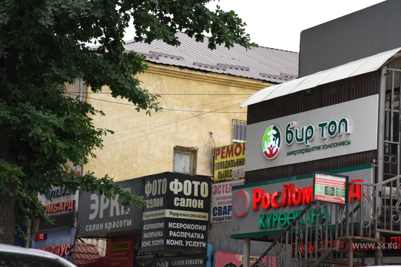 Трудно не заметить, прогуливаясь по Бишкеку, как первые и цокольные этажи увешаны разного рода баннерами и растяжками. Наружная реклама тут и там пестрит всеми цветами радуги, тут и там выцветает и рвется.