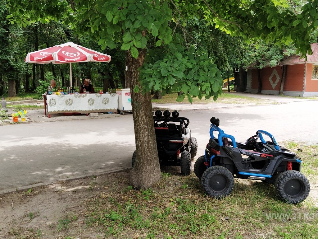 Нет полноценных условий и для отдыха с детьми. Центральная аллея выглядит так же мрачно, как и центральная площадь столицы — стихийные торговцы, упомянутая выше груша-силомер, прокат детских автомобилей с видавшим виды автопарком, сомнительного качества батут. Развлечения с приветом из 1990-х.