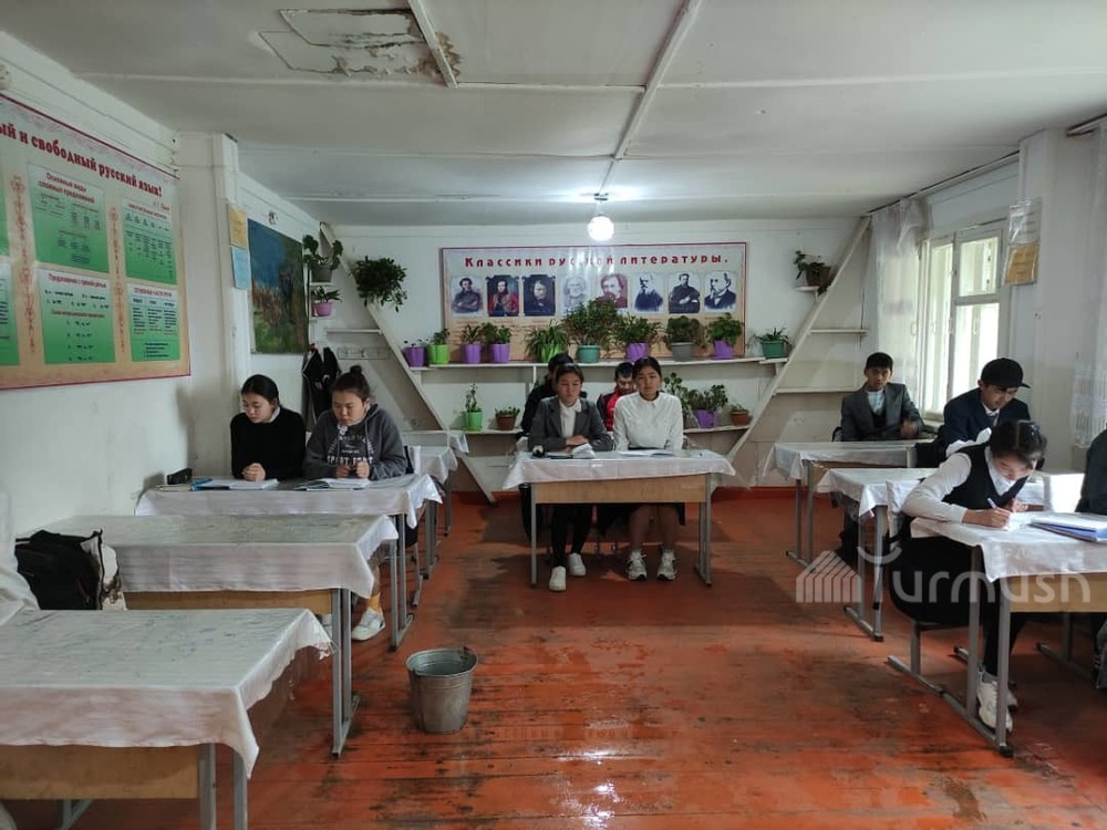 В школе села Жергез Ак-Суйского района дети вынуждены учиться буквально под дождем из-за протекающей крыши. Об этом сообщают журналисты региона.