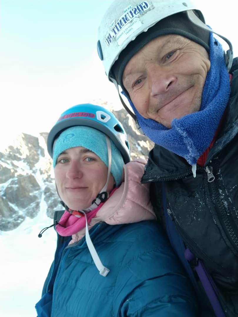 — Супруг — сильнейший альпинист с двумя наградами Piolet dOr и орденом «Мужество». В альпинизме больше 30 лет, сходил около шестидесяти сольных восхождений пятой-шестой категорий трудности. Среди них зимние первопрохождения и первопрохождения на семи— и восьмитысячники. На май 2022 года совершил более 200 восхождений в качестве гида-инструктора.