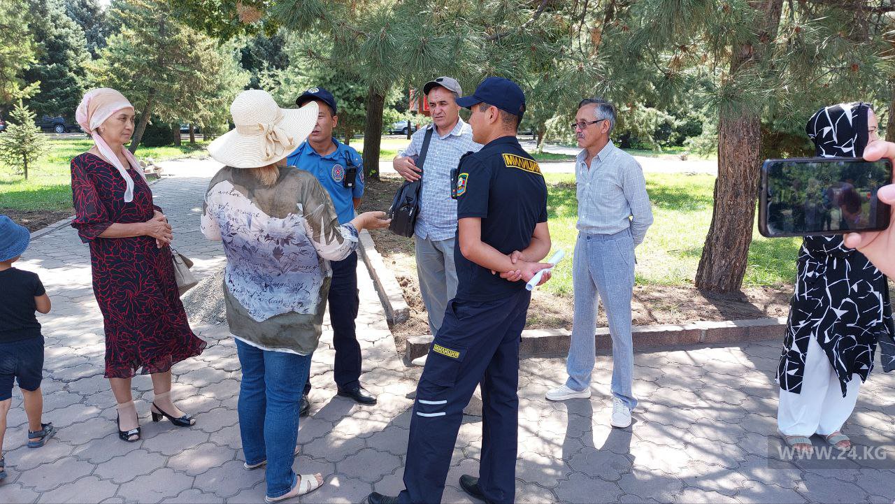 К участникам протеста подошли сотрудники милиции и попросили пройти в сквер имени Максима Горького или записаться на прием к президенту Садыру Жапарову.