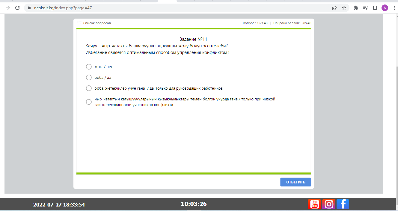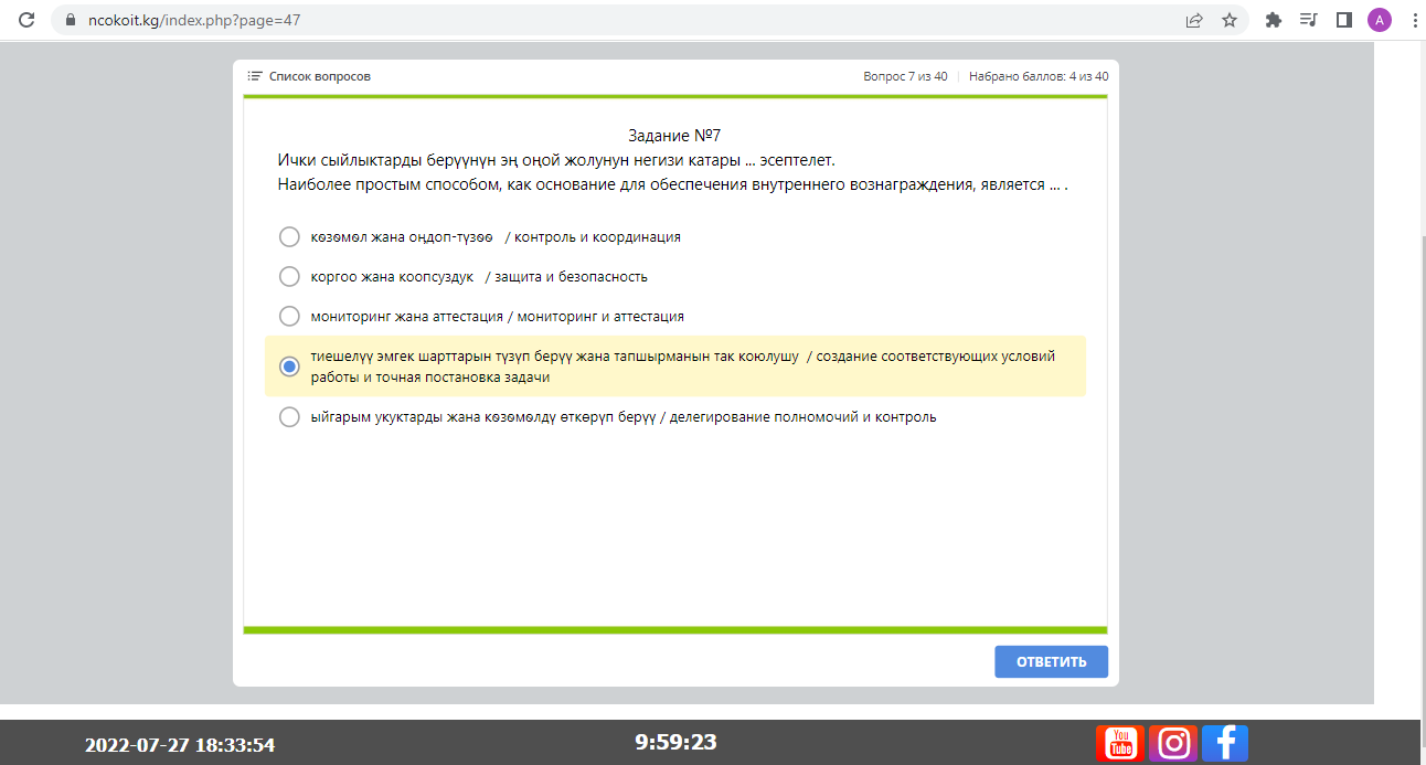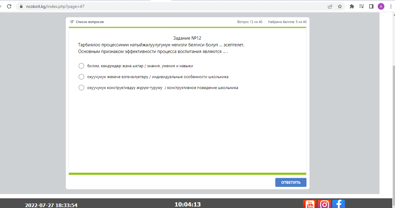 Корреспондент 24-kg.com также прошла тест и набрала проходной балл.