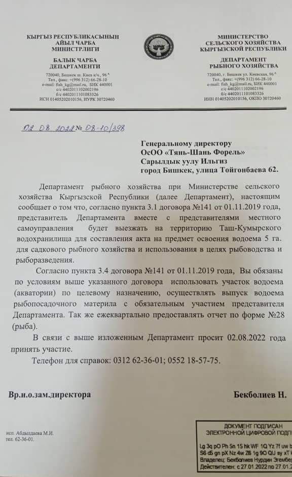 Отметим, сегодня Илгиз Шаменов побывал на допросе в ГКНБ, а в его компании «Тянь-Шань Форель» началась проверка, инициированная Минсельхозом и Министерством природных ресурсов.