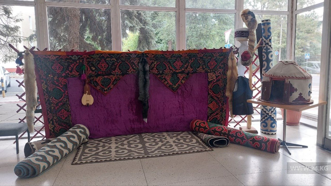 На передвижной выставке представлены работы кыргызских ремесленников, представителей Ремесленного совета Кыргызстана «КӨК», фотографии Султана Досалиева и фотокорреспондента Игоря Коваленко.