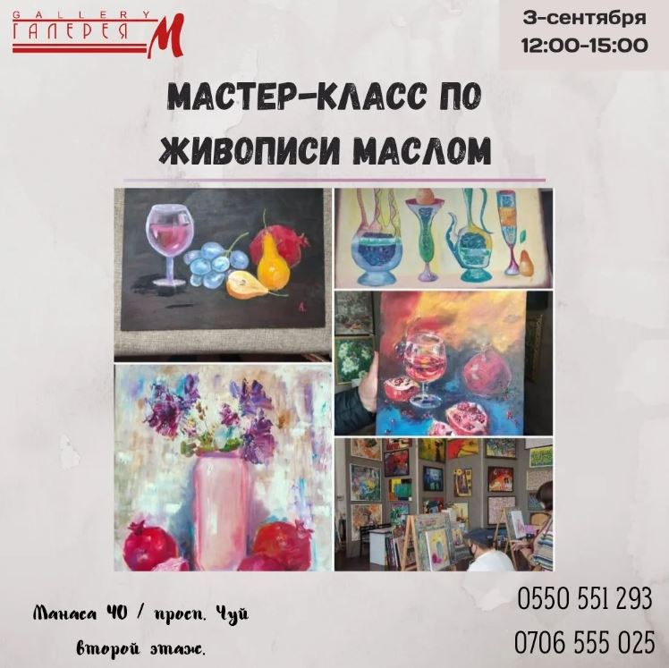 Желающие напишут картину маслом под чутким руководством профессионального художника Кадыра Бекова. Все необходимое предоставляется. Регистрация по телефону 0557555025.