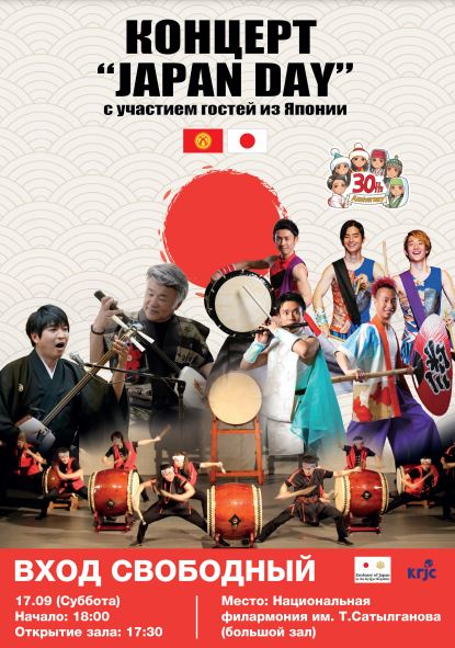 Гостей ждет насыщенная программа от популярных групп «Байсе» и «Цай» (Япония), а также «Ооэдодайко» (Кыргызстан). Музыканты продемонстрируют неповторимую технику игры на барабанах. До концерта в фойе пройдет Japan Fest, где можно больше узнать о стране.