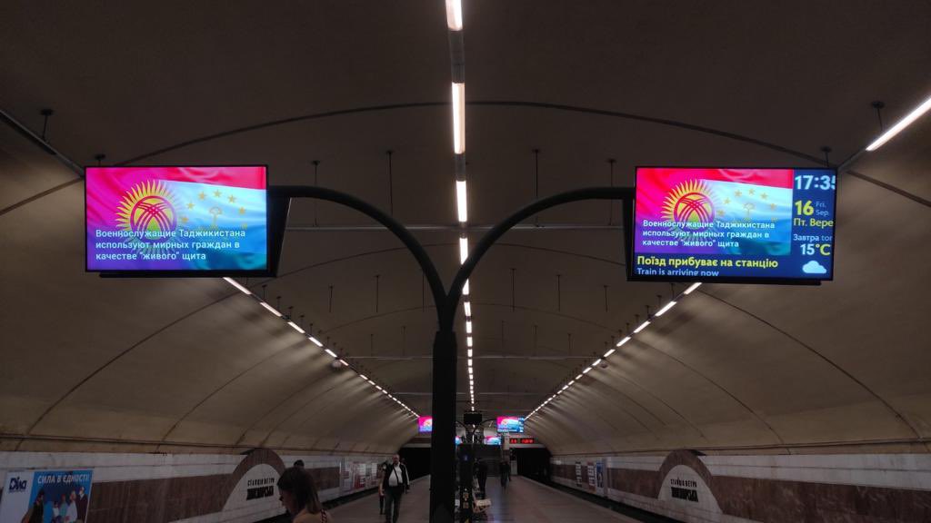 В метро Киева (Украина) на мониторах транслируют объявления о ситуации на кыргызско-таджикской границе.