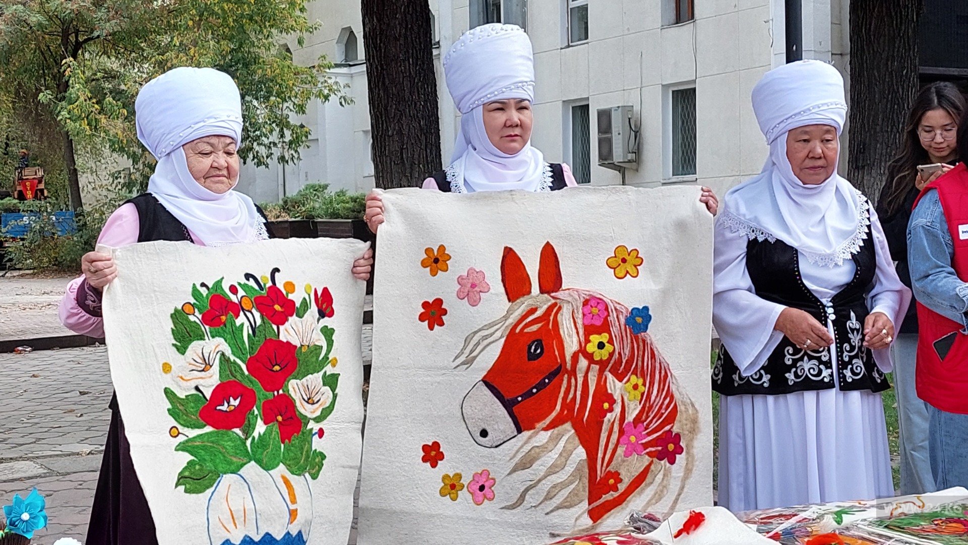 На ярмарке представлены изделия из войлока, шерсти, сувенирной национальной продукции, а также сельскохозяйственная продукция, мыло ручной работы и многое другое.