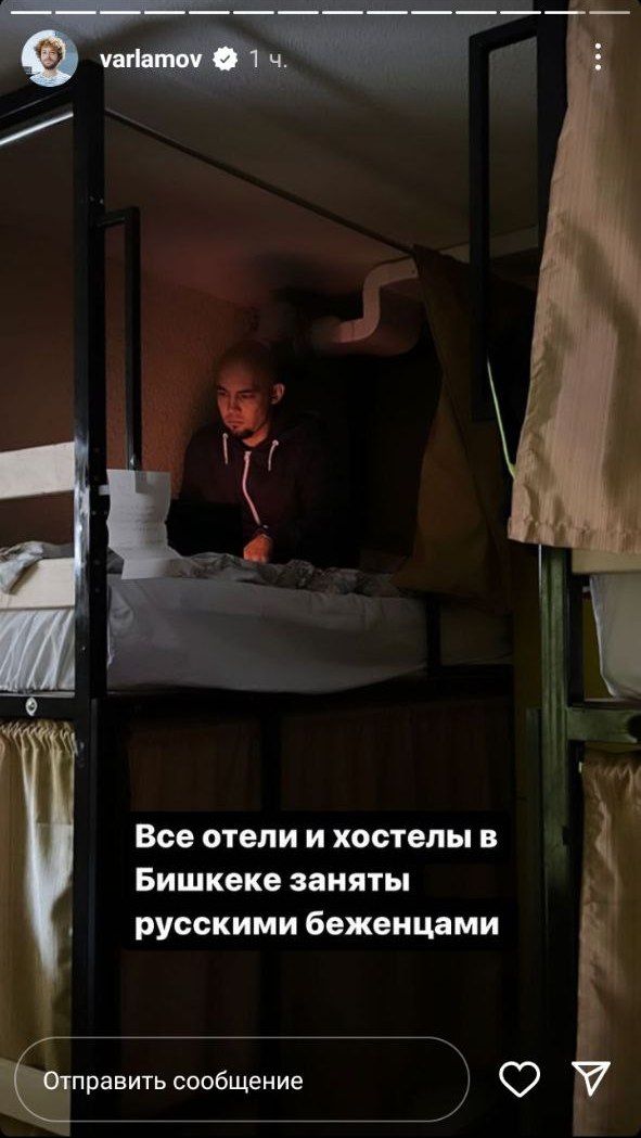 Российский блогер и урбанист Илья Варламов высмеял арендодателей квартир в Бишкеке, поднявших цены, и сообщил, что все отели и хостелы города заняты россиянами. Публикации об этом появились на его странице в Instagram.