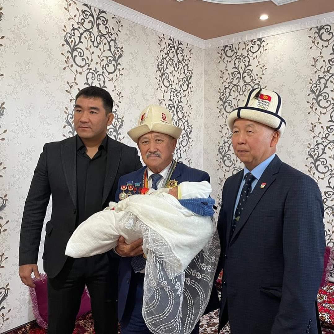 В городе Кызыл-Кие Баткенской области чемпион московской Олимпиады-1980 и четырехкратный чемпион мира Каныбек Осмоналиев встретился с семьей, где родился 7-миллионный гражданин Кыргызстана.