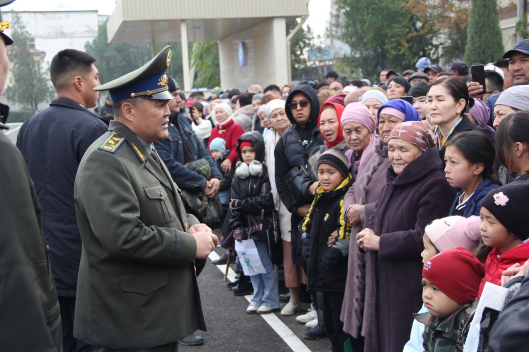 По его данным, в церемонии участвовали генерал-лейтенант, глава ГКНБ Камчыбек Ташиев, личный состав войсковой части 64479, председатель Комитета солдатских матерей Уулкан Жумашевна и родители новобранцев.