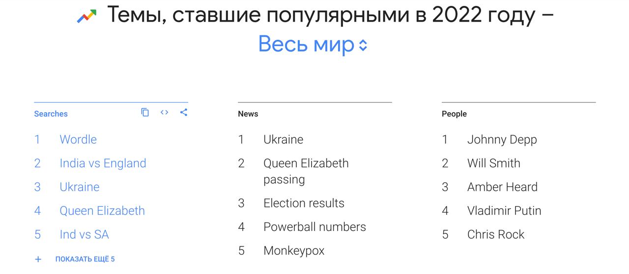 Google опубликовал список самых популярных поисковых запросов за 2022 год.